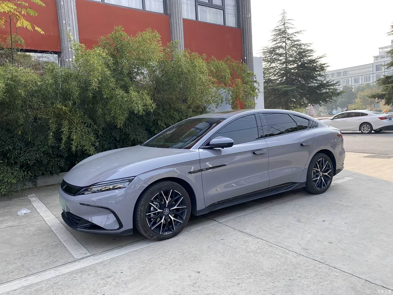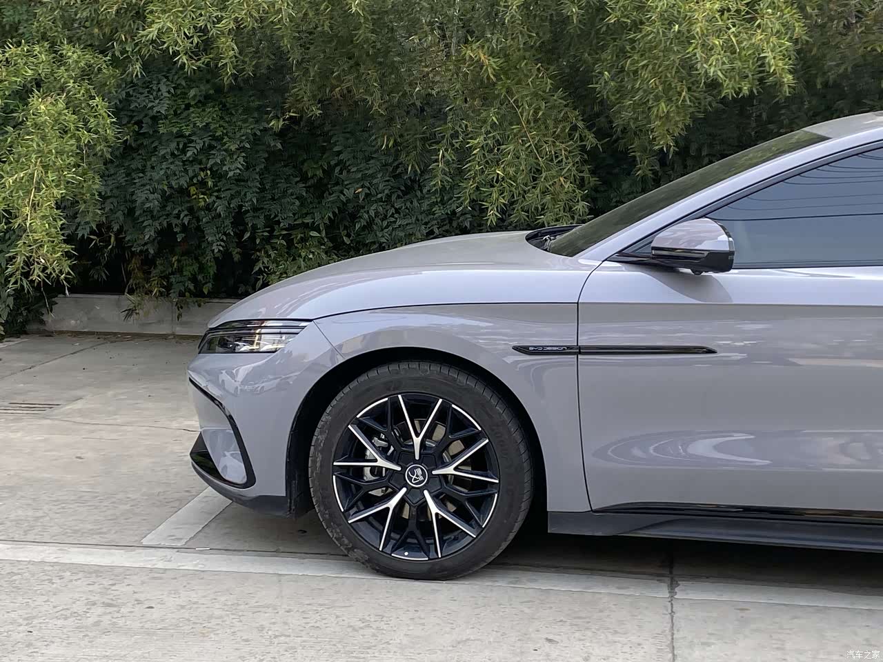 比较喜欢比亚迪汉的铝合金轮毂和隐藏式门把手设计风格,让整个车身看起来更加干净利落,富有未来科技感。