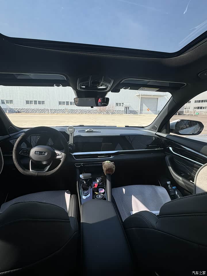 星越L的内饰采用了3块12.3英寸的大连屏,使整车的豪华程度上涨!由于我的是长风版,所以内饰颜色是整体黑色,云起版为棕白色内饰更加漂亮,天际版就采用了翻毛皮内饰。中控台和门板上用了大面积的搪塑软材质。中控台布局简洁明了,所有快捷按键触手可及,即使在行驶中也可安全操控空调等各种功能。