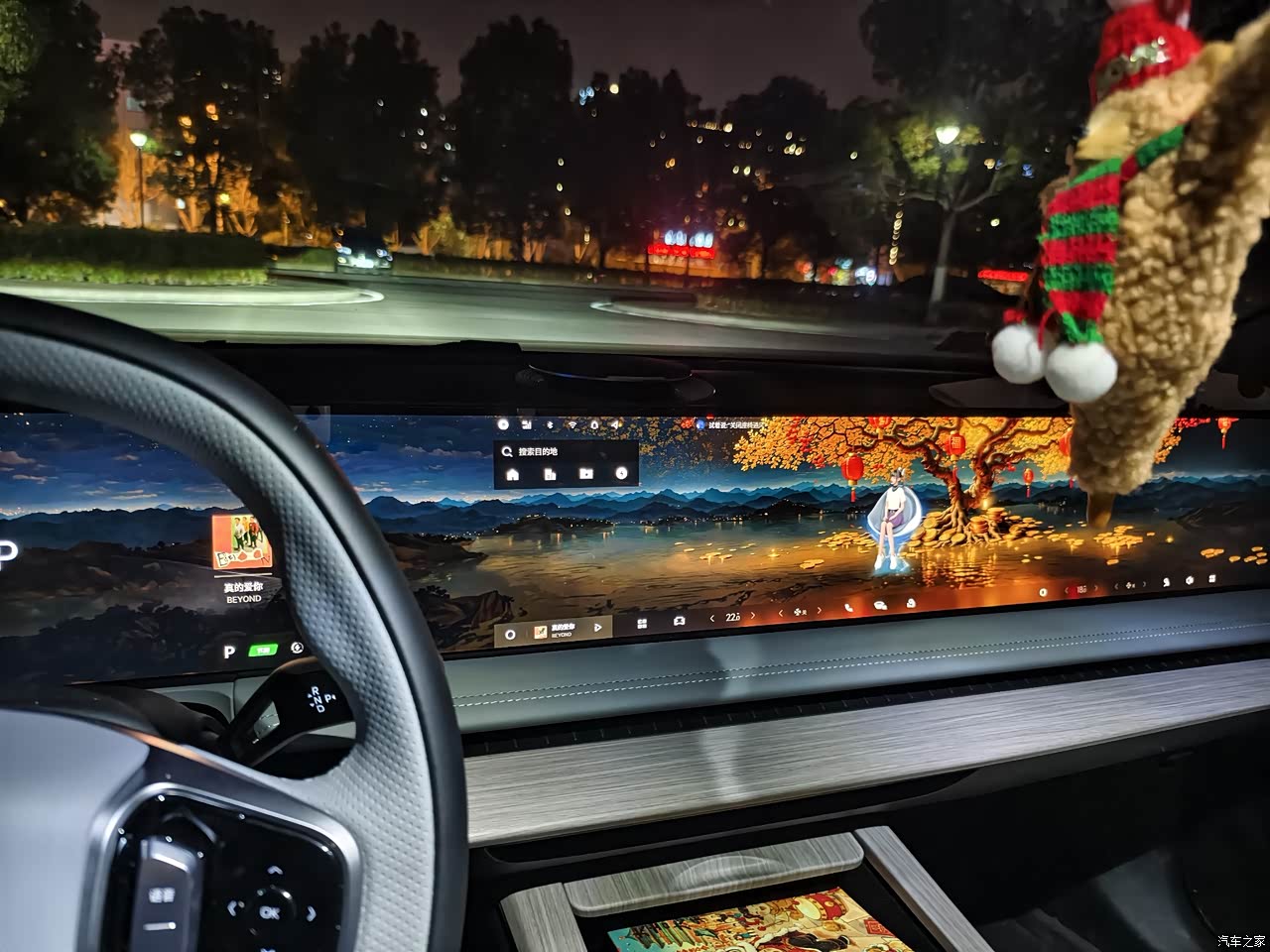 **车机**:车机系统是一大亮点,语音控制很顺滑,那块 45 英寸的大屏幕看着就爽,操作切换也流畅,界面清爽简洁,背景有西湖美景、长城、银河之类的主题,壁纸和屏幕适配得很好。而且内置的车机系统,功能丰富,无论是玩游戏还是调空调都很拿手😎。 **颜值**:这车的颜值确实挺高,很符合年轻人的口味。前脸设计动感时尚,辨识度很高,整个车看起来非常帅气。车身线条流畅优雅,车长超过了 5 米,车宽接近 2 米,无框车门和隐藏门把手的设计,让整车看起来简洁大方又不失科技感👍。 **智能方面**:智能配置也挺高,像碰撞预警等一系列安全配置,全方位守护乘客的安全。还有防晕车模式,这个功能太贴心了🤗。