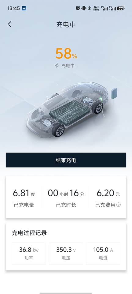 快充功率36kw,能够很快补能,基本40分钟就能冲到90%,给个好评。