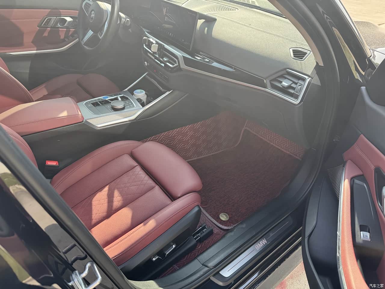 i3的内饰还是有些高级感的,坐进来马上就来了感觉,整体搭配很协调大气,座椅的配色也很高档,尺寸也很宽大舒服,大联屏也很有时尚感,内容也能满足日常需要,虽然 不能跟国产新能源的车机相比,但跟油车3系来讲的话已经进步了,我们要灵活运用,车机好用的就用车机,不好用的可以用手机,所以我还配备了一个如上图的手机支架,哈哈。 车内配置悬浮式一体曲面屏,屏幕由12.3英寸的全液晶仪表和14.9英寸的中控屏组成,这也是车内的最大亮点,显示清晰度很高,看上去是非常惊艳的,比较有未来感。 整体内饰还是蛮有质感的,配色很鲜艳,皮质也有好,触感和乘坐舒适度都能得到最好的体验,反正跟油车3系是一样的,在合资车当中又是宝马这个品牌,又是这个价位,还是可以了,起码操控上体验是非常好的。