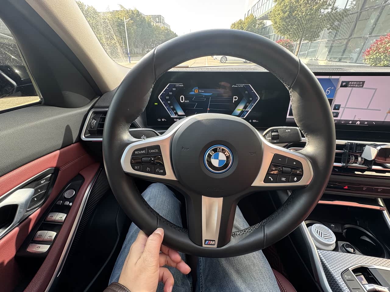 我的宝马I3,车内的整体布局比较规整,配色很有豪华高档感,内饰设计的质感和精致感也不错,中控台面都是采用的软质皮质包裹,摸上去也很舒服,搭配了镀铬金属装饰,这样就提升了车内整体质感,虽然为新能源车型,并没有取消物理按键,物理按键的保留也是有很大便捷的操作体验,让油车过来的我能很好地适应。 车内的整体布局比较规整,配色很有豪华高档感,中控台面都是采用的软质皮质包裹,摸上去也很舒服,这个颜色很有高级感 ,座椅也很宽大,还有腿托,坐着很舒服,门把上也是同样的颜色和材质,座椅都是同色包裹 三辐式圆形多功能方向盘,以真皮材质包裹,触感很细腻,支持四项调节和多功能控制,这个运动化的方向盘握感也很扎实,同时换挡拨片依旧为拨片式,这里必须要配上刀锋钥匙来搭配才更有效果,哈哈。 三辐式圆形多功能方向盘,真皮材质,摸着手感很好,配上刀锋钥匙,蓝天白去一出,感受更加特别和高调