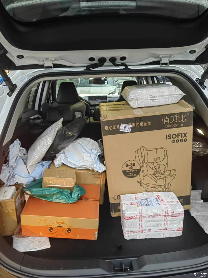 空间对于家庭来说,绝对够用了。我在后排放一个安全座椅,小孩坐上面,我把主驾左右调到最后,放倒都不碰到安全座椅。后备箱是真的很大,用一个多月,就没有愁过空间问题。
