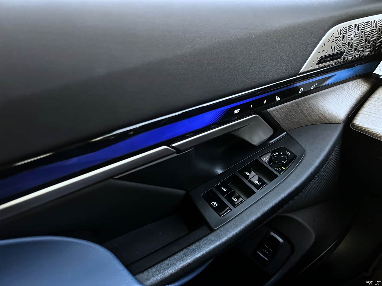 它的内饰设计,没有了鸡腿档把,选用水晶旋钮,精致感提升一大截。而车内的环形水晶氛围灯,看上去更加的奢华