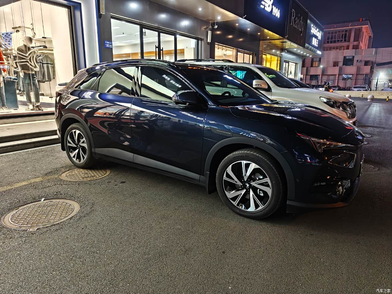 车身做工还是良心的,整体偏运动,大灯比较个性,像犀利的眼睛,贯穿式尾灯颇具辨识度,极夜黑灯光下有些偏蓝