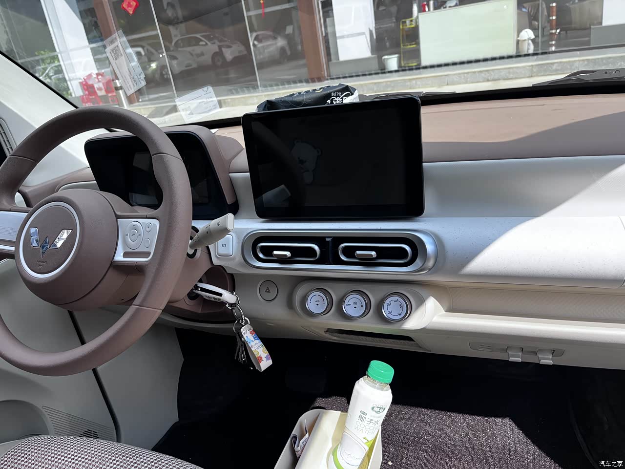 车辆配置不高,但是倒车雷达,蓝牙,坡道辅助,都有。就是没有大屏,倒车影像,自己花钱加装了一的大屏,感觉还是很不错的。在五菱汽车的app上,可以看到车在哪里,电量多少,也可以远程锁车。