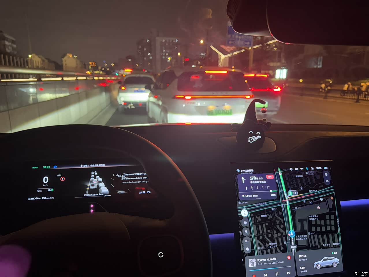 作为“本本族”,自动泊车是我最依赖的功能。公司地库车位宽度窄,不好停,以前坐同事车感觉总要折腾三四把才能停进去,现在自动泊车或者遥控泊车大部分时间都是ok的。只需按住方向盘按键,看着屏幕上的虚拟车框自动对准,省心不少。NOP+在环线堵车时是我必开的,自动跟车、车道保持稳如老司机,能解决很多时候下班太累的问题。