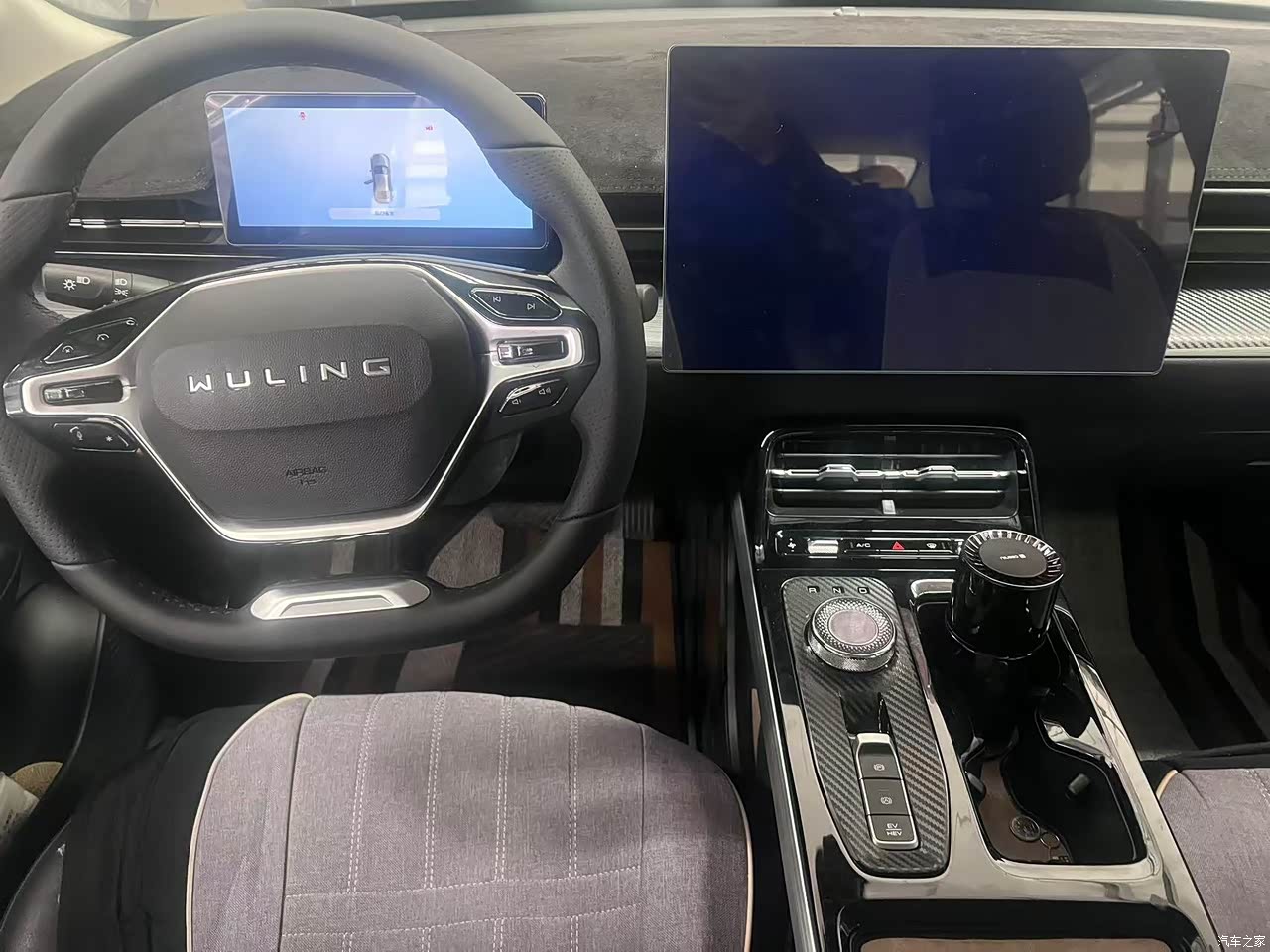 皮质多功能方向盘可以接打电话,切换音乐,调节音量,定速巡航,摸起来手感不错,操作灵敏,虽然是插电混动但是在电与油切换过程中很顺畅,没有明显的钝感,并且在高速切换到运动模式,动力很足,超车迅速给力,不拖沓,真想给他加个鸡腿。