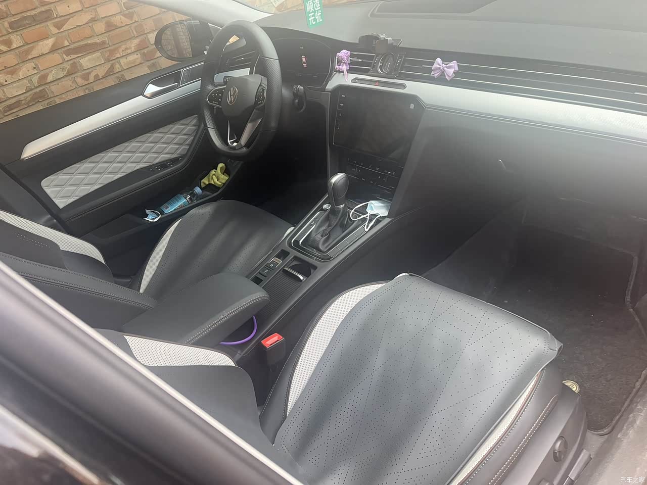 我特别只要这款车的内饰,非常的大气,黑白单配,简单又高级,氛围灯可以自己调节,我调成了我自己喜欢的紫色 ,而且别的内饰品也是我喜欢的紫色饰品来搭配的。