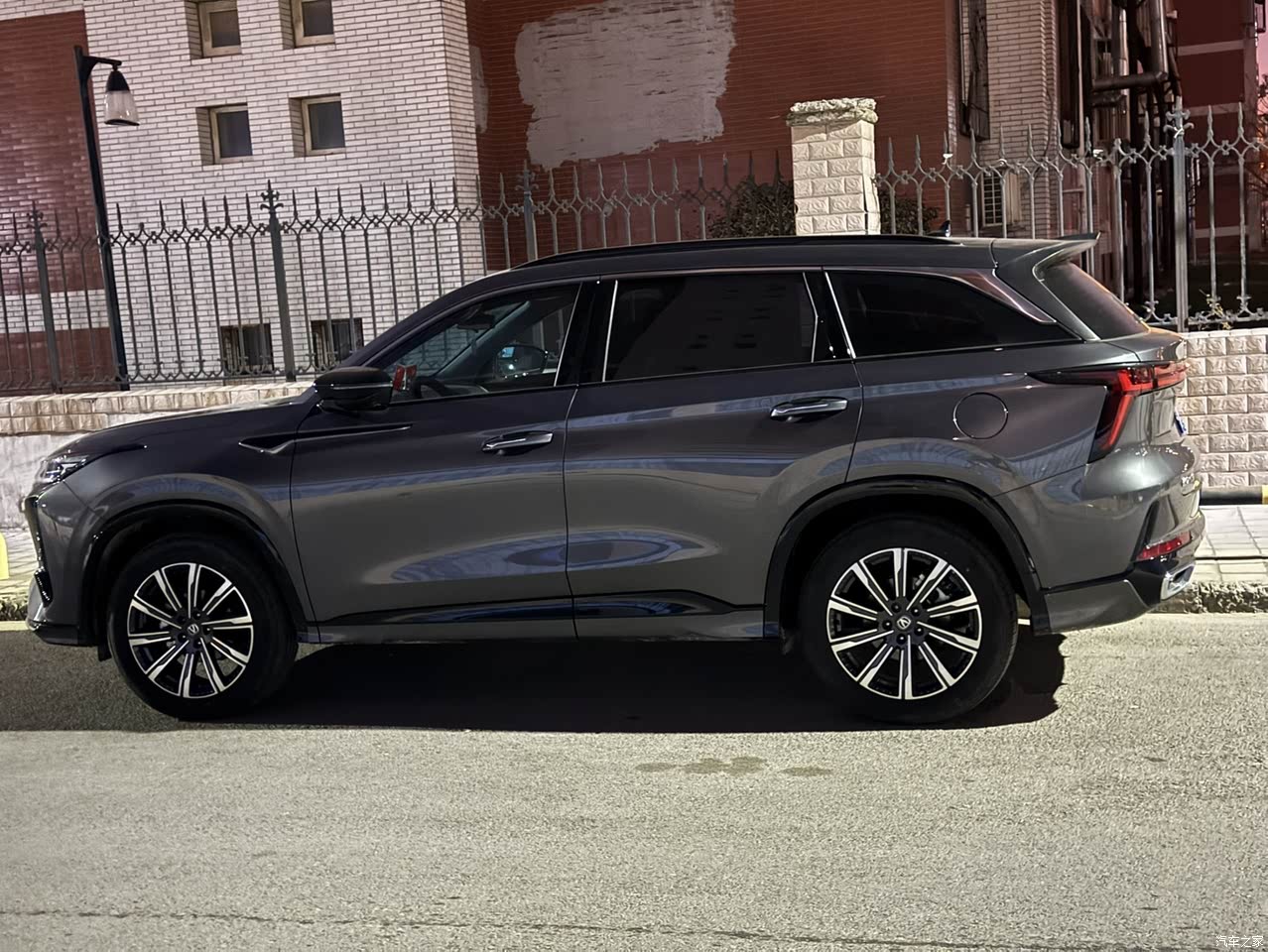 外观也是很大气,不像是这个价位的产品,整个前面和后面都是贯穿的灯带,现在也是有气质,整个车身也相当的长,在同级别里也是很大,看起来挺霸气