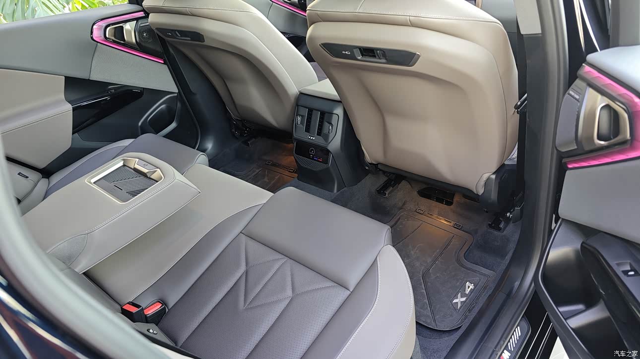 我是凯迪拉克xt5车主,这一次试驾,我感觉新款x3l给我最直观的感受就是内饰的变化。氛围灯造型大胆,科技感很强。另外就是空间,非常宽敞了,比上一代有了很大的改进。后排的坐垫长度很不错,长途的话承托性也不会有问题。后排头枕加了迈巴赫那种软质头枕,坐着比较舒服。后排扶手加了一个无线充电,这个不错。