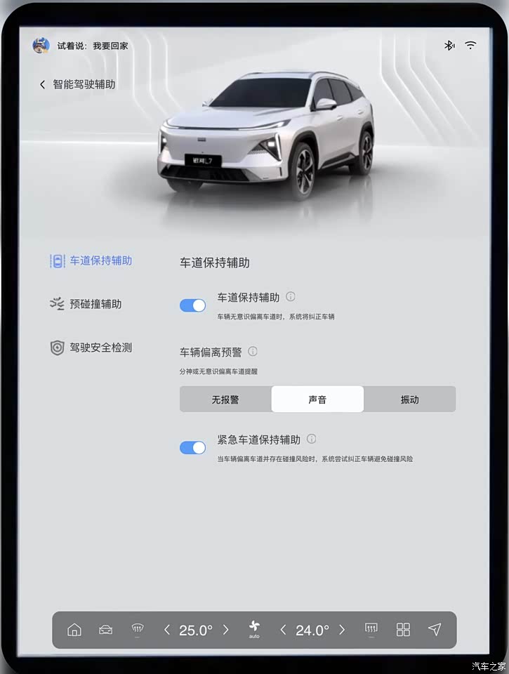 吉利银河L7的车道保持功能可自动纠正车道并导正车身,适应多种天气