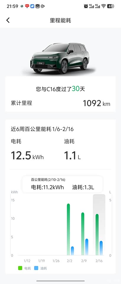 入手的增程版纯电续航200公里,实际续航140.150公里左右,单公里成本低。高速馈电油耗约6.1L/100km,日常使用中,短途纯电、长途油电结合的模式能有效降低用车成本。