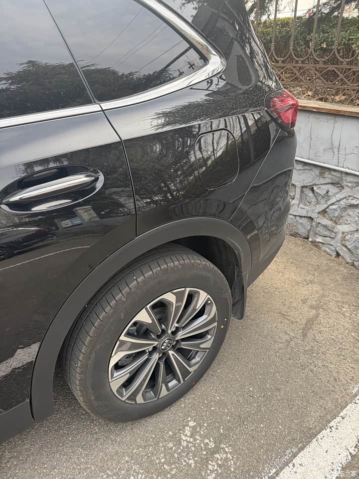 外观还是挺大气的。当时也就是因为看好他的外观才去看的车。颜色我这边儿选择了黑色,黑色相对于来说还是比较大气沉稳的,并且黑色的也不容易过时。后面的后尾灯是这种贯穿式的尾灯,特别的时尚。整体的轮圈的造型也特别的漂亮。