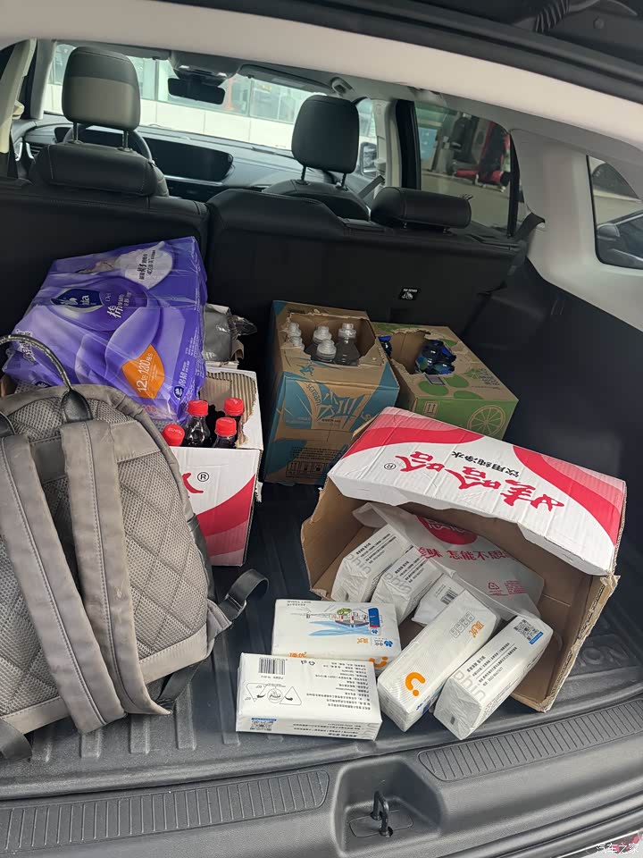 空间对于我们来说还是相当不错的。平时一家人出行完全够用。并且后面的地摊儿也不是特别的凸起。还是在能接受的范围之内。后面坐三个人是完全绰绰有余的,空间是特别好。并且后备箱的空间也是特别大的,看我这里里外外拉了多少东西。这全家出行买点东西放在后面真的是特别的方便呐。动力又大,空间又好,真的是很喜欢这款车。