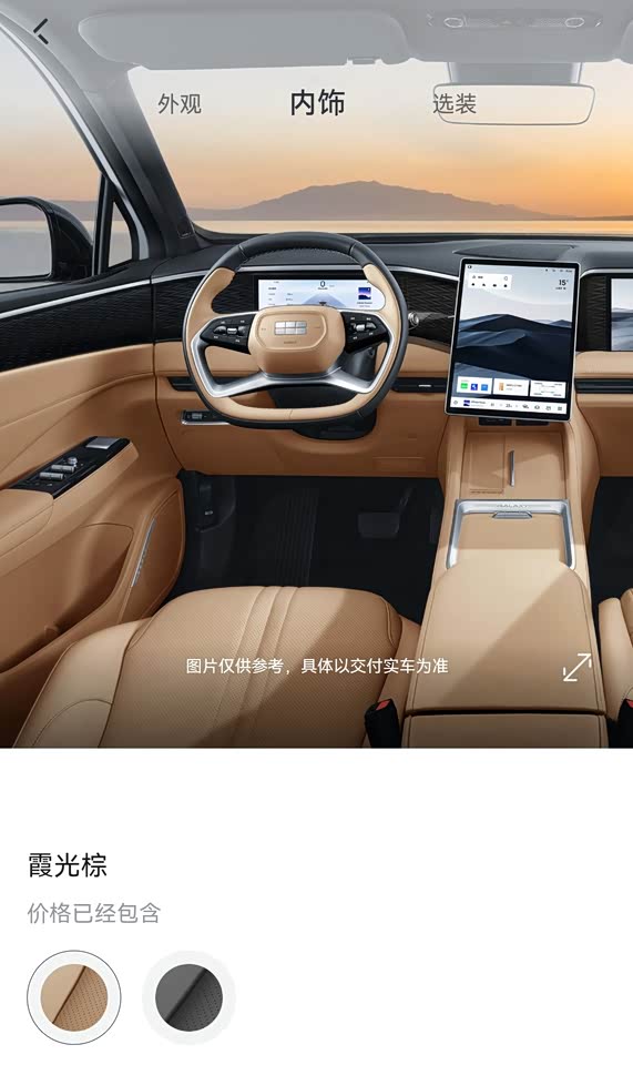 吉利银河L7内饰可选颜色有天际白、灯火棕和玄玉黑,吉利银河L7emi内饰可选颜色为霞光棕和深空灰,新款比老款少一种可选颜色。新款配色沉稳大气,也是市面上多用的配色方案,但是我个人更喜欢老款简洁明快的配色,这点纯属个人喜好,见仁见智吧。