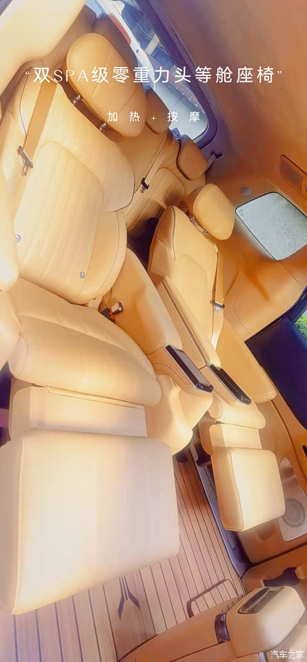 一键零重力头等舱座椅这个功能了得,好像只有乾坤版顶配才有,这个真的很享受很舒服。 全车6做配有座椅加热,前排和第二排都有按摩。