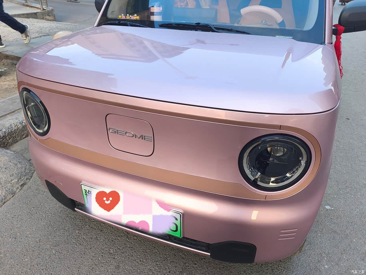 熊猫颜值挺在线,整体的设计风格就是比较可爱又呆萌,两个圆萌萌的大灯囧囧有神,粉色车漆看着还是很有质感的。