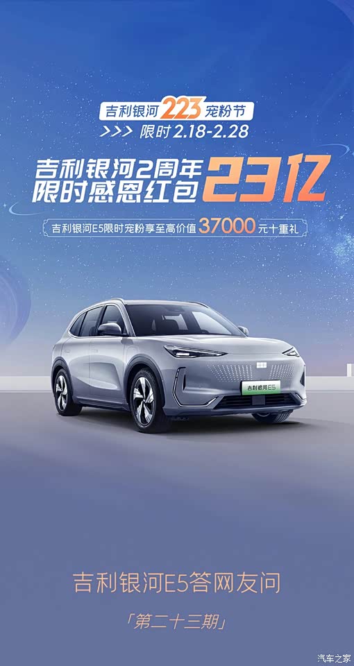 这车无论是开起来还是坐起来都非常舒适,空间又足够大!银河 E5 给我的感受就是使用起来四舍五入后简直不要钱,因为我装了家桩,且广东有谷电,每度电才两毛多,太爽了! 一个月跑个两千多公里,电费也只是百来块。E5 的60.22kWh电池支持8年或12万公里质保,一年不超三万公里,首任车主还有三电终生质保,使用更无后顾之忧!