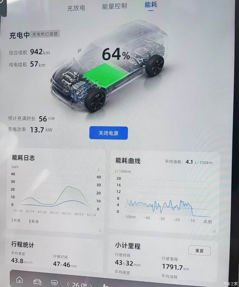 北方小城市,上下班采用纯电模式。买来三个月正好是冬季,充满电显示90公里,实际跑差不多60公里。加满油显示用油可跑到1050公里,感觉会打折。目前总共用电和油混合着跑了3860公里,30%高速跑,70%市区跑,油耗大概4.1l每百公里。总体来说我还是很满意的