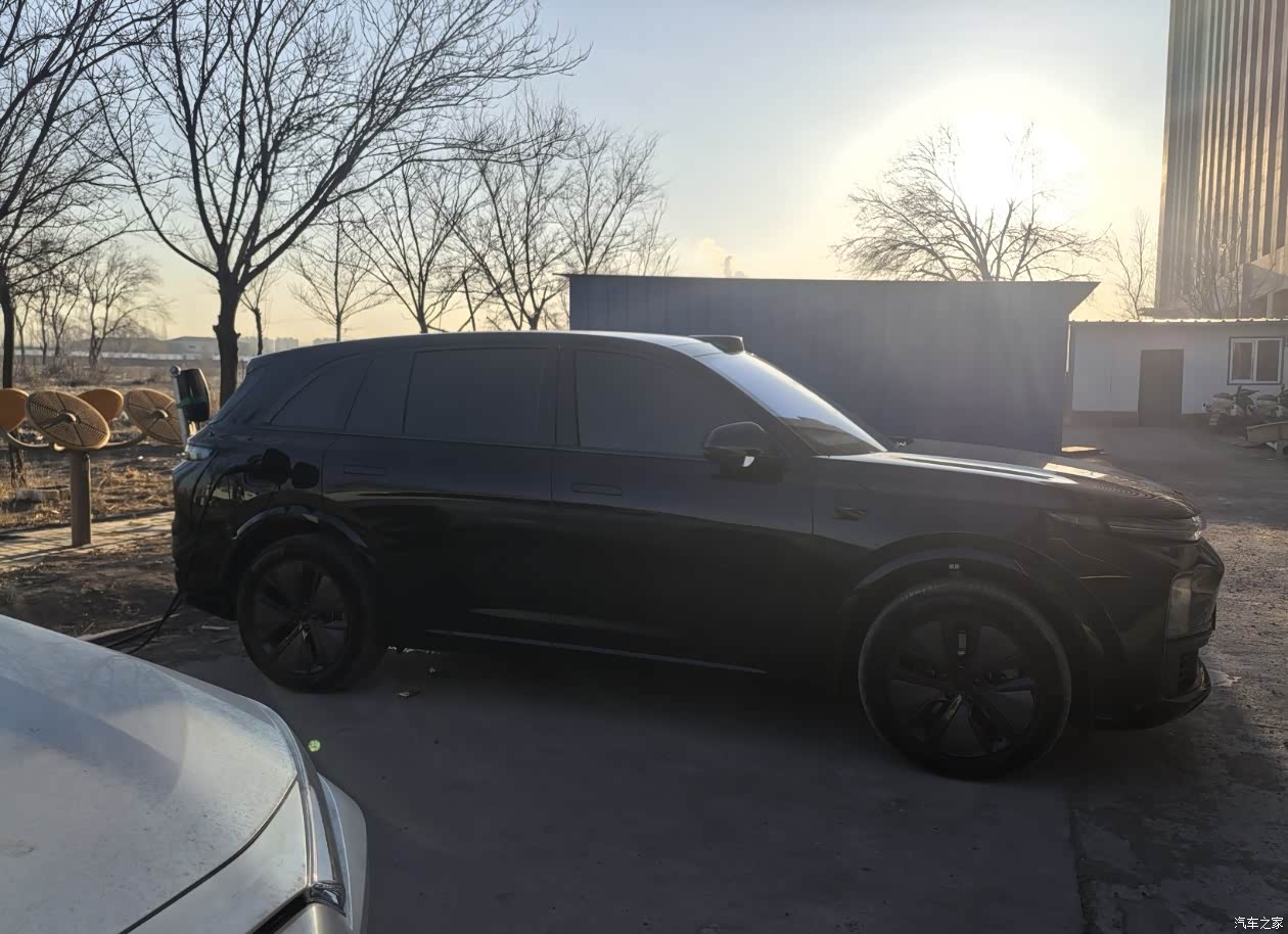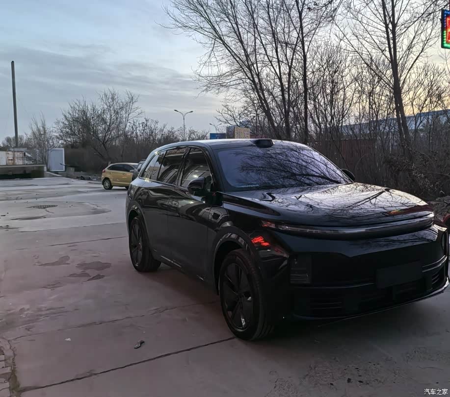 理想标志的弧形大灯真的帅,就像是黑夜中的一抹微笑,看起来高级大气。外观选择黑色没得说,就是容易脏,建议购买后经常洗车!