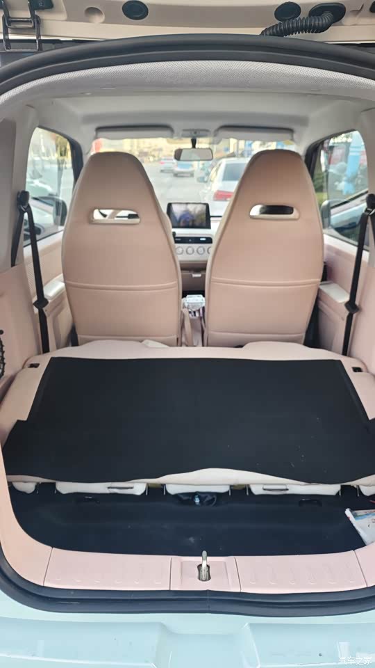 这小车的空间表现超出了预期,车身虽然小,但乘坐空间很大,我家二宝坐前边有很多的剩余空间,后排坐2 个大人一点都不拥挤,而且腿也能伸开,尤其是上下车时候,大人也不用调座椅就能行,之前看了其他几个车型都需要来回调座椅才能上去。后排座椅可以放倒能拉些货物。