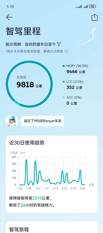 过去332天,我与ES6相伴走过27000公里,这一路的驾驶感受,只能用“惊艳”来形容。 它的4D舒适底盘堪称一绝,前后五连杆悬架搭配第三代CDC动态悬架阻尼控制系统,不管是平坦大道还是崎岖小路,都能轻松应对。过减速带时,震动被过滤得恰到好处,车内几乎感受不到颠簸,平稳又舒适。IPB智能线控制动系统响应迅速,制动精准,给足我安全感。ICC智能底盘域控制器协调各系统,让驾驶更流畅。 Nop+智能驾驶功能更是我的长途救星。往返南京合肥,还有春节长途出行,累计9800公里的Nop+使用里程,极大解放了我。开启后,车辆自动跟车、保持车距、智能变道,操作流畅自然。我只需时刻留意路况,身心都能得到放松,长途开车不再疲惫。ES6将驾驶的舒适与智能完美融合,每一次出行都变成享受 。