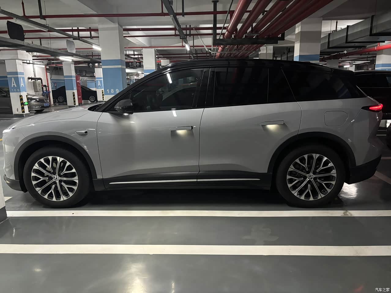 原创设计,选装了20寸雪花轮毂,星空灰外光,配上中型SUV的尺寸,外观没得说,很有豪华质感,尾灯也是贯穿式的,晚上前大灯动态亮起很帅气,尾灯开启时也有动态扫动效果,很不错,蔚来的外观设计很稳,低调的豪华感满满。