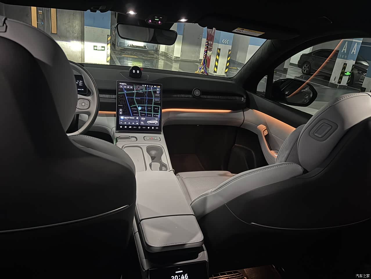 目前NT2.0平台内饰设计都差不多,蔚来中控屏是方形4:3比例的,很多人喜欢16:9宽屏,当然也有不少同学喜欢这种方屏设计,我们觉得方屏也可以,毕竟不经常用这个看爱优腾三个视屏软件,偶尔看看显示效果也不差,nomi是一定要选装的,圆圆的头很好玩,各种表情,这个其实是彩屏的,显示很细腻,大号的HUD也是标配,方向盘后面的长方形仪表盘也能显示路况加导航,内饰对大多数人来说适应起来毫无压力,很容易上手。