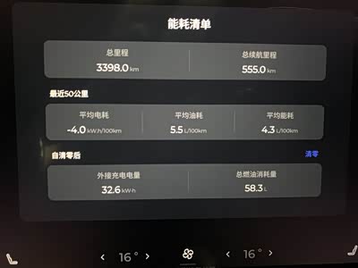 能耗方面跟路况和驾驶习惯影响很大,个人的驾驶习惯不是特别激进,表现高速和山路会达到六七个油,日常市区可以稳定在四点多,综合下来五升每百公里,这么大个车还是不错的,但是电池电量感觉掉电挺快的