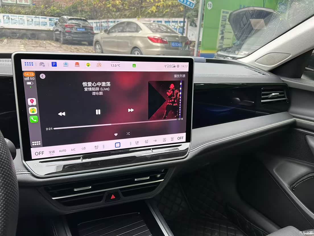 中控台呈偏向驾驶员布局,功能区域划分清晰。通过运用大量软质材料包裹,来提升豪华氛围。车内配有15英寸2K高清液晶屏,可支持CarPlay/CarLife,以及语音识别控制系统,同时还装备的有车联网和OTA升级,提升智能化操作体验。多功能方向盘采用三幅式设计,造型上偏向运动。值得一提的是,高配车型也配有真皮座椅,在舒适性方面我觉得还是很厚道的。
