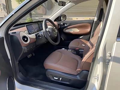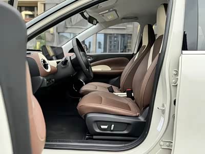 配置较为丰富:中高配车型配备10.25英寸全液晶仪表和10.25英寸悬浮式中控屏,搭载Ling OS灵犀系统,具备智能语音交互、在线导航等功能,还有爱奇艺、QQ音乐等娱乐应用。此外,还拥有自动驻车、无钥匙进入、倒车影像等实用配置。 外观内饰精致:外观采用复古韵味的设计,圆润饱满,双拼配色精致可爱。内饰采用皮质软包,座椅柔软,做工精细,质感较好。 充电效率较高:全系标配直流快充,电量从30%充至80%仅需35分钟,补能迅速,方便用户出行。 质保政策有优势:首任非营运车主享受三电终身质保,在后续使用中能让车主更放心。动力性能较好:搭载50kW三合一水冷扁线电机,电机槽满率提升20%,散热能力更好,功率密度提升0.8kW/kg,高效率区间扩大11%,电机效率高达96%,最高车速提升至130km/h,无论是市区起步还是高速超车,都能提供较为充足的动力。车内空间宽敞,1米8的乘客坐进后排腿部和头部也各有一拳空间,且后备箱容量达1240L,能轻松满足通勤购物、家庭出游等载物需求。