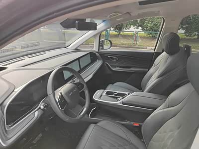 内饰设计的还是蛮精致的,整个正前方就是三个屏幕,很豪华,直接延展到了副驾驶的前边,看起来更加的充实,而且它是类似于半内嵌式的设计,小孩坐在副驾驶座位鼓捣的时候我也不用担心会磕到碰到。