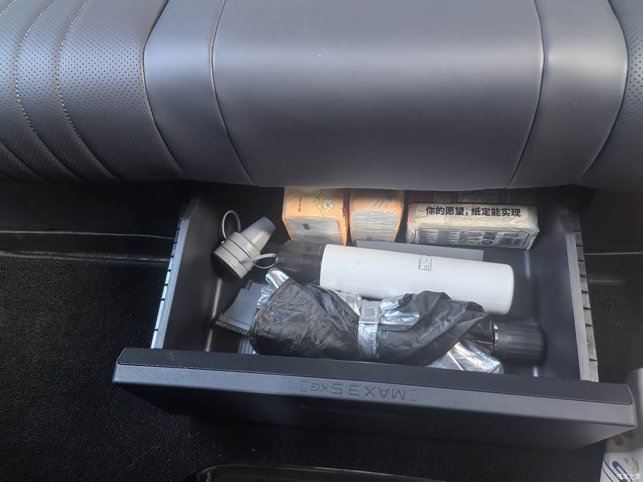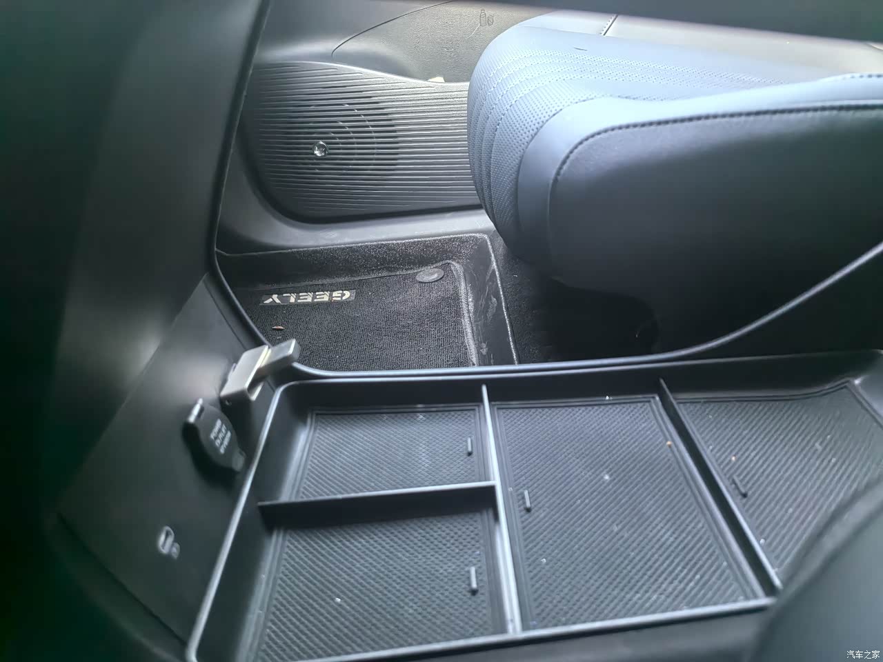 作为紧凑型SUV,银河E5的空间表现真的是超出预期。我身高172cm,前排调至舒适位置后,后排膝部两拳多的空间,头部无压抑感。后排地台纯平,满载三人时中间乘客也能舒适伸腿。 储物细节:门板储物格够深,放三四瓶矿泉水一点没压力,平时车内水杯又多了个去处;中控台下方的镂空设计可以放包;后备箱隔板有两层高度可调,平时露营用的桌椅藏起来,还你一个干干净净的后备箱。