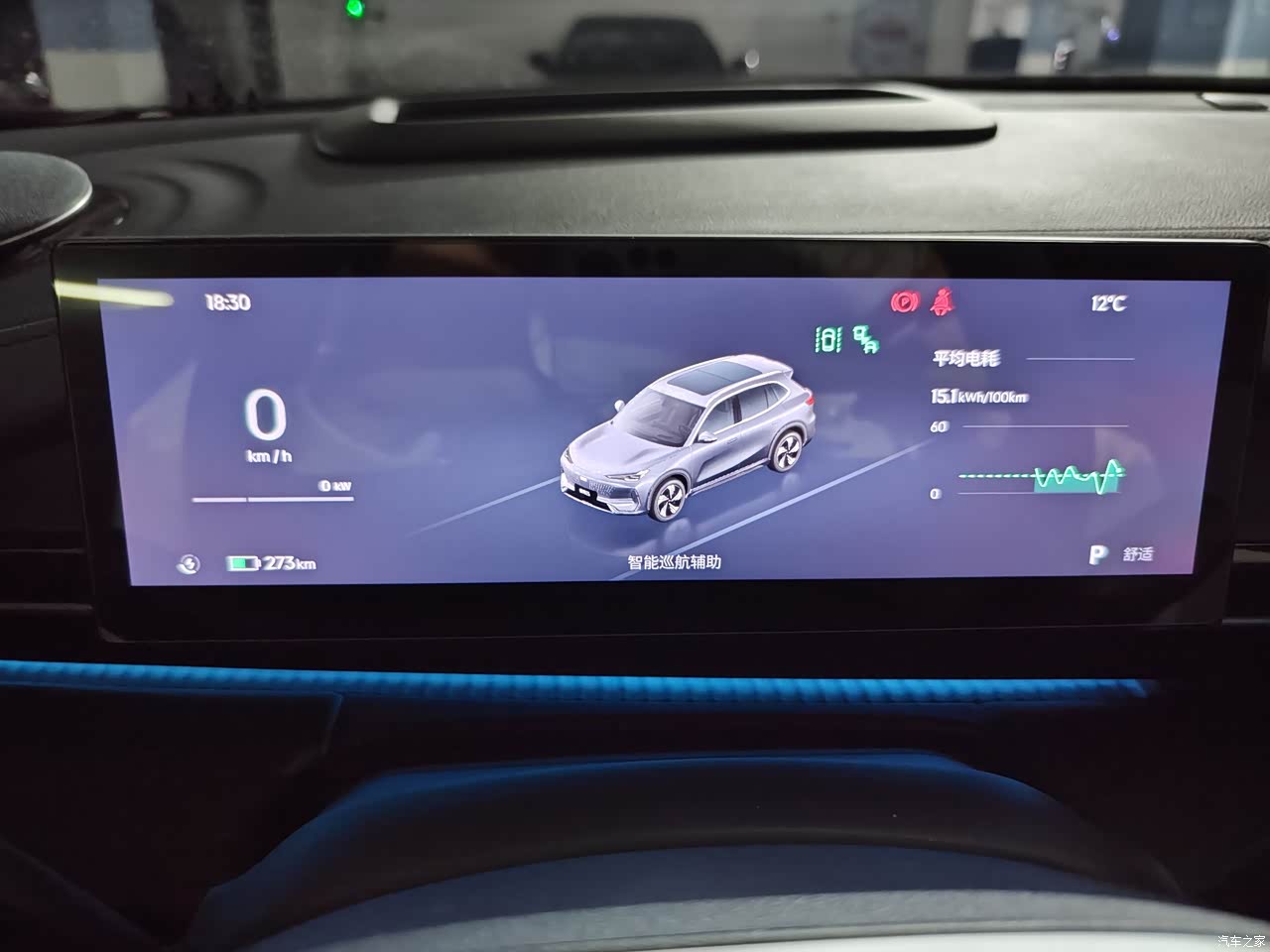 内饰比较简约,也有氛围灯,但是只有前排有,后面没有,这个有点减分,中控可以自己整个储物格