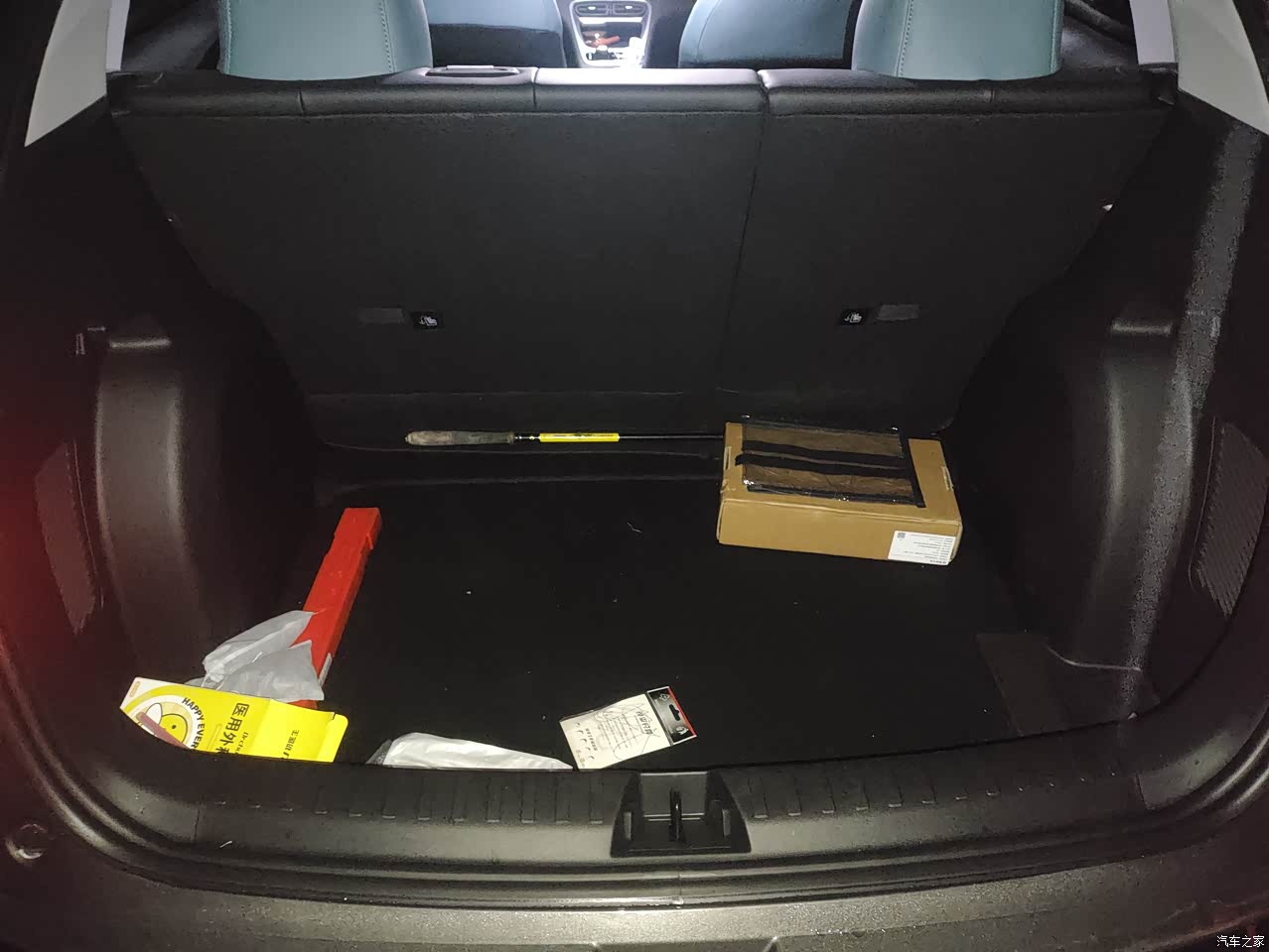 后备箱空间不算小,有车友加装了储物盒,使后排座椅放倒后与后备箱齐平。