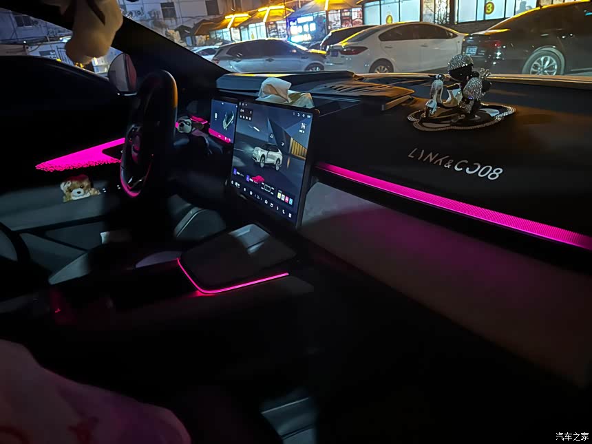 内饰氛围灯靓丽漂亮,屏幕很大,内饰材质标准,年轻化,内饰吸引人,储物空间储物盒多,放东西挺方便,推荐,
