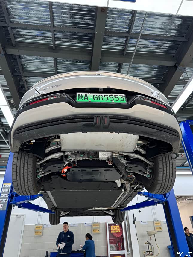 底盘就是这个车最大的特点了,终于是赶超同价位的bba的底盘了,用料方面简直就是吊打,底盘看不见除了铝以外的材质,而且非常平整,hev和ev同平台,期待一下以后有固态电池了可以把现在的电池拆下来换成固态电池。
