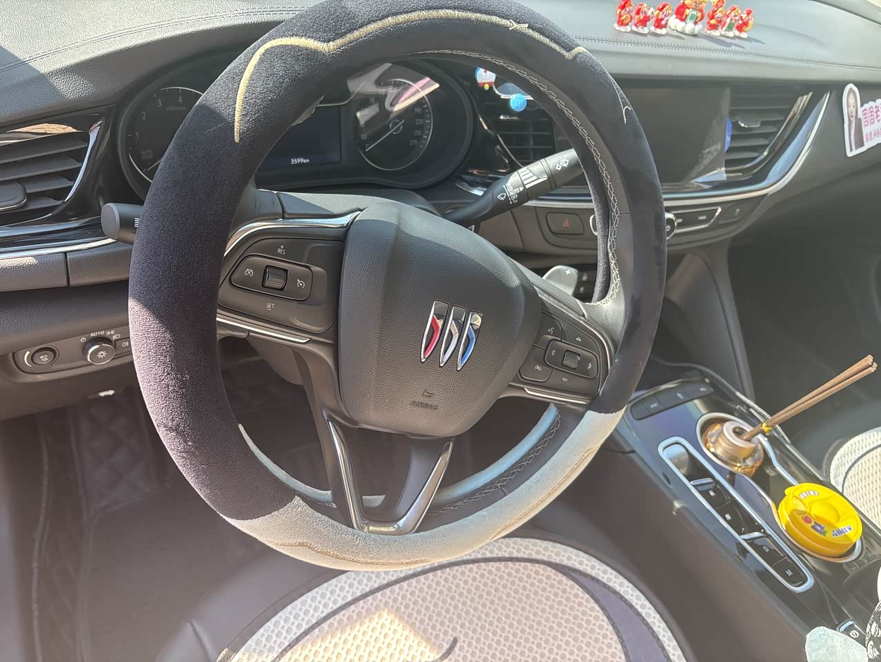 外观:这车外观耐看,一开始觉得有点奇怪,但越看越顺眼。中网大气,侧面线条感十足,有点美系车的感觉。前脸往里收,尾部往外舒展,如果有个贯穿尾灯就更漂亮了。新款的别克标志我觉得挺精致的。内饰有点老气,和老款差不多,但保留了实体按键,这点挺好的。仪表盘是液晶和指针相结合的,中控按键换挡,挺方便的,也显得整洁。空间:这车空间挺不错的,毕竟是B级车嘛。我身高1.8米左右,坐后排稍微有点顶头,不过腿部空间挺宽敞的。就是中间凸起有点高,如果中间坐人的话,可能会不太舒服。后排座椅还能放倒,装长东西很方便。前排中控和后排扶手都有放水杯的地方,后备箱空间也大,进深挺长的。配置:这车虽是低配,但配置挺实用的。有全景天窗、定速巡航,高速上经常用。倒车影像很清晰,主副驾都是电动座椅,前排还有加热和无线充电功能。这些配置在20万左右的车上都不一定有。还支持CarPlay,连接快又稳定。辅助驾驶:开这车感觉特别扎实,1.5T的动力平时开完全够用。起步提速挺快的,除了堵车时有点顿挫,其他时候都挺平顺。在高架上超车或上下匝道,侧倾感挺小的,高速上底盘很稳,开到110以上也不飘。不过高速超车确实有点吃力,毕竟排量有限嘛