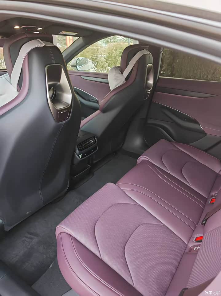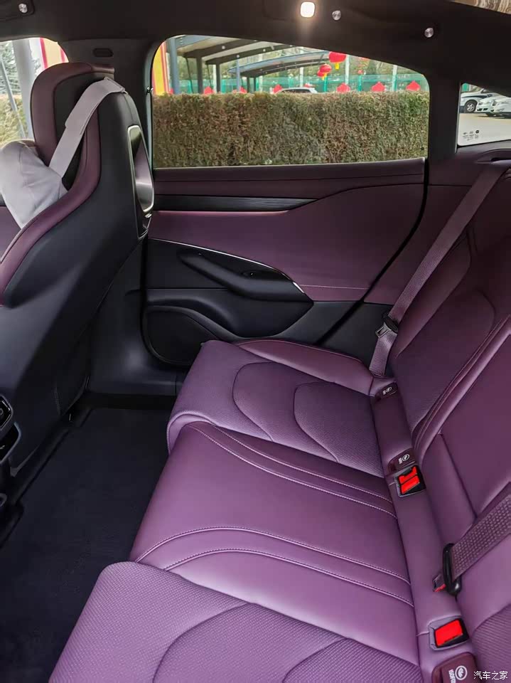 紫色内饰很喜欢,安全带也是紫色的。内饰整体的风格是简洁优雅的,没有过多装饰,也不简陋。同时紫色也比较耐脏。