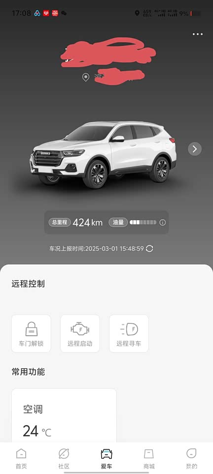 手机APP可以控制空调。车辆解锁,远程启动。
