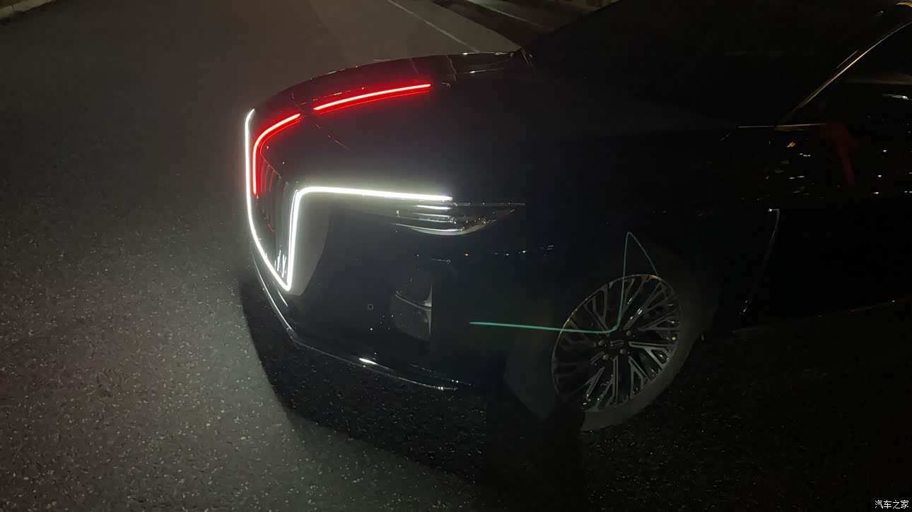 1.直瀑式中网,加上贯穿的红色旗标,看起来很庄重,像豪华行政级轿车。 2.发动机盖上的线条让前脸更有力量感。 3.远光灯不能上下调节,个人感觉照的很高,偏暗。