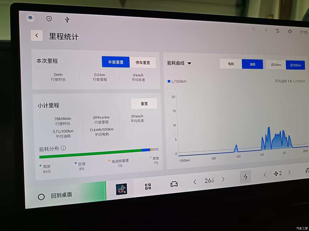 家住县城,在车库里用随车充插220V电源充电.app显示50%-100%约4小时.实际上3个半小时就充满了。试过一次国家电网的直流充电桩,功率7.3kw. 50%充满大概得2个小时,没试过超级快充。春节期间.跑了趟长途,全程438公里.冬季北方,开暖风,全车满载,满油出发,到目的地再加满,油费280元。280元÷7.73元/L÷438公里×100%=8.26 L/100公里。对不起大家,我开得油耗有点高啊。 官方发布的3.9L/100公里,可能在时速50公里的情况下能够达到。市内使用基本上纯电使用。大约1毛钱/公里. 10元/100公里