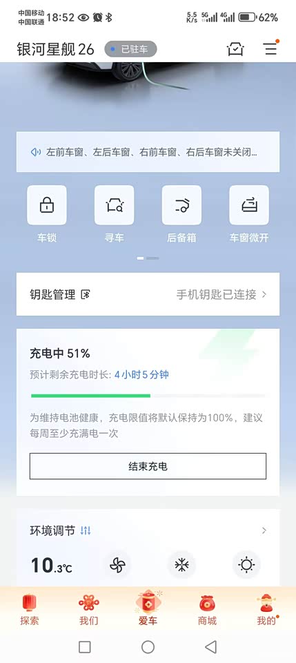 车机响应快,语音控制很灵敏,语音指令都能听懂。“你好银河”“我在”马上就会回应。手机映射有华为hicar, carlife flyme auto 可我的是荣耀手机,哪个都匹不上。将来换手机再说吧。