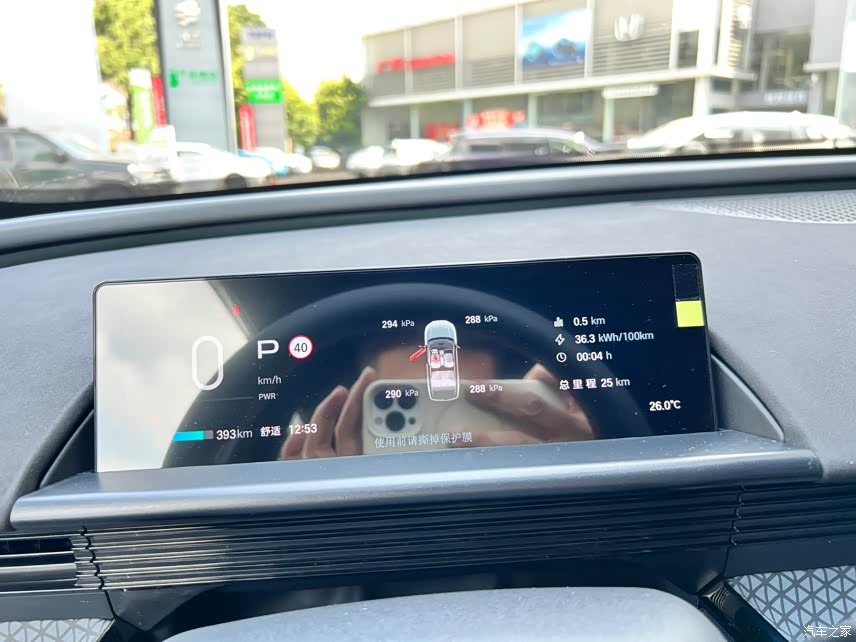 巡航这块还是挺不错的,我试驾的这一款是520公里的,目前广东温度在20度左右,不用开空调,试驾了5公里,续航掉电显示是1比1。