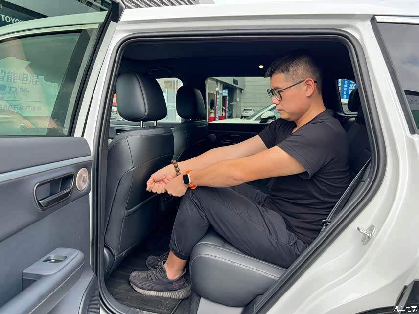空间表现还是比较有惊喜的,这一款车的车长达到了4米6,车宽达到了1米85,还有车高是1.6米。 我的身高1米8,坐进第二排的空间表现非常宽敞,腿部空间还是两个拳头的距离,头部空间也有2个拳头的距离,最让我喜欢的就是它第二排的地板还是纯平的,我45码的大脚放下去还是非常自如,这样的第二次空间坐三个我这种体重的人都非常的轻松。