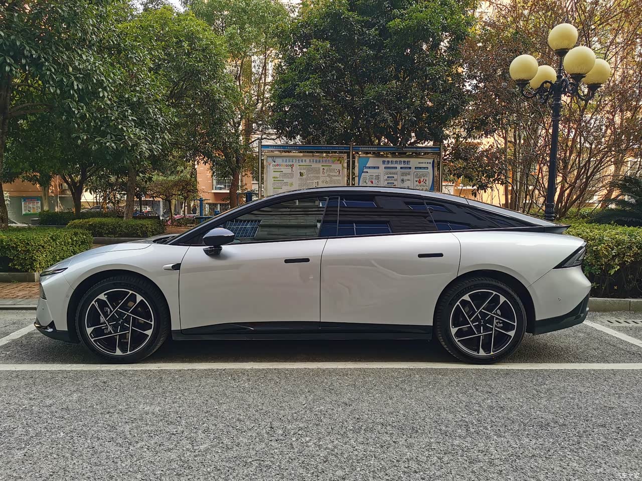 外观真的太帅了,无边框车门和无边框后视镜加分不少,双层尾翼设计很拉风,银色看起来科技感满满,路上回头率很高。