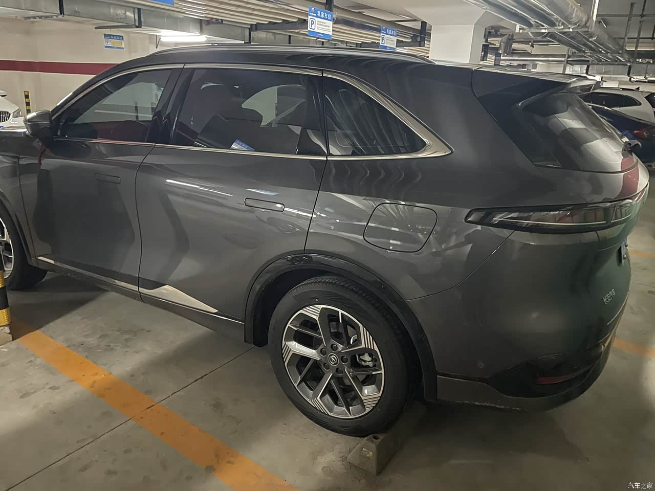 外观颜色选择的最多的安第斯灰,也是很好看的颜色。19英寸的轮毂,还有这科技感的隐藏式门把手,大雪天气也没有出现被冻住的情况,同时也可以无钥匙进入,也很便利。