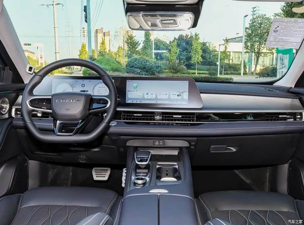 内饰采用了时尚的双联屏设计,科技感十足。内饰的颜色搭配协调,材质使用在同级别车型中表现出色,给人一种豪华舒适的感觉。三幅式方向盘包裹着高级真皮,手感舒适。12.3 寸的悬浮双联屏搭载了奇瑞最新研发的车载互联系统,功能丰富,操作也比较方便。