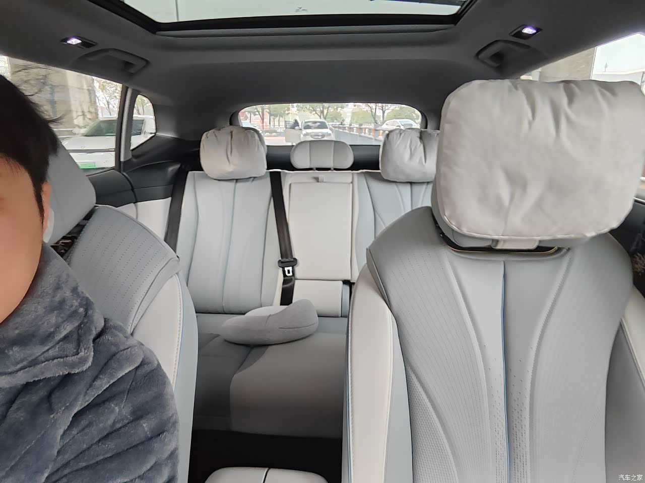 轴距有两米九,前后排空间都很大,前排座椅有电动调节,可以一键躺平。后排的靠背也可以手动调节。后备箱还有个下沉的储物格。